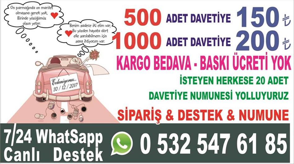 İSTEYEN HERKESE DAVETİYE NUMUNESİ YOLLUYORUZ